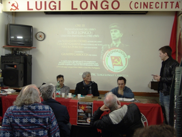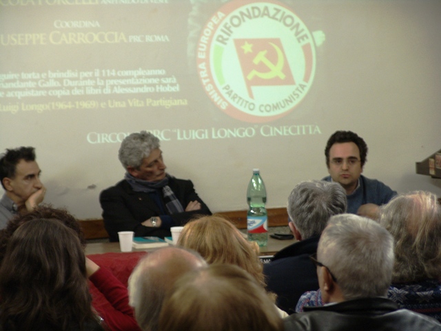 15 marzo 2014: presentazione del libro “Luigi Longo, una vita partigiana (1900-1945)” al circolo Prc “Luigi Longo” di Cinecittà. Poco prima era stata inaugurata la biblioteca popolare Franco Iachini, del circuito biblioteche popolari “Ciro Principessa”, una splendida iniziativa unitaria dei comunisti romani. A conclusione della serata taglio della torta per ricordare la nascita del compagno Luigi Longo, “Gallo”.