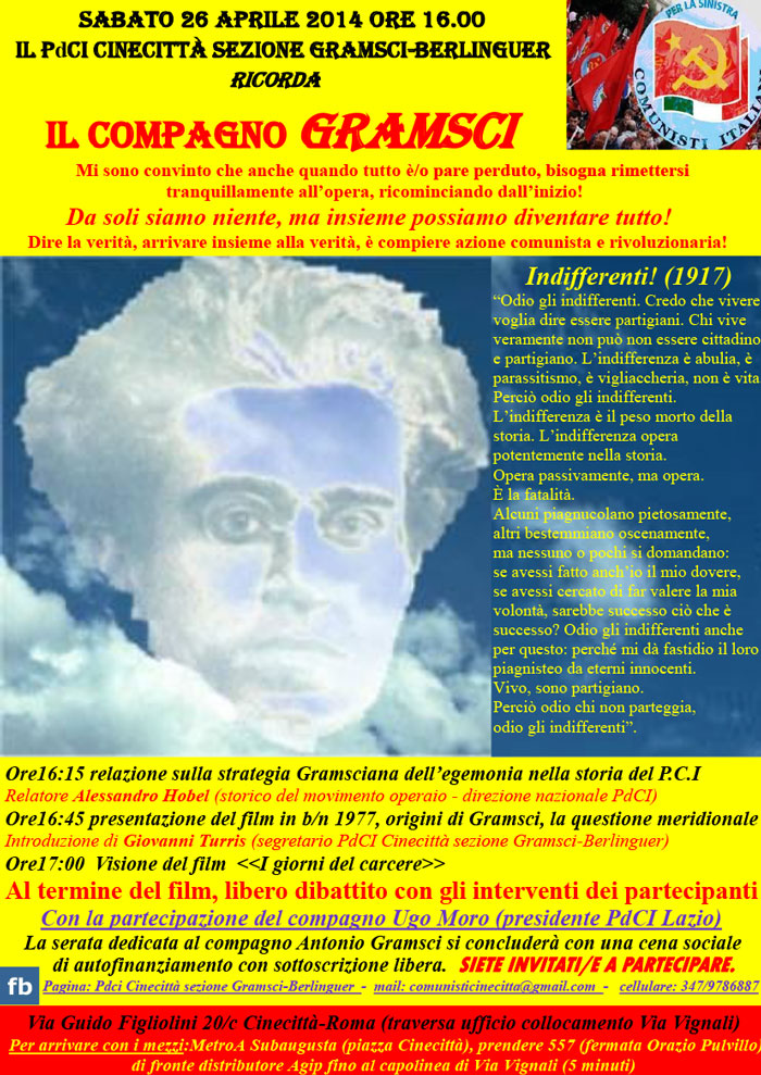Roma, 26 aprile 2014 – Il compagno Gramsci